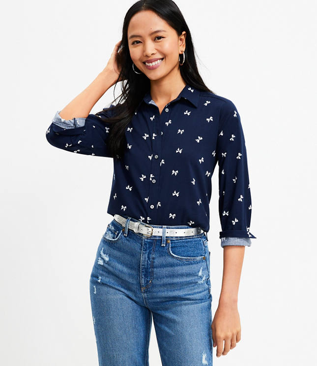 It comes in other colors too in case something brighters more your taste. Blue Denim Shirt Unbuttoned Overlayer Pink T-Shirt Black Jeans All-White Low-Top Sneakers.